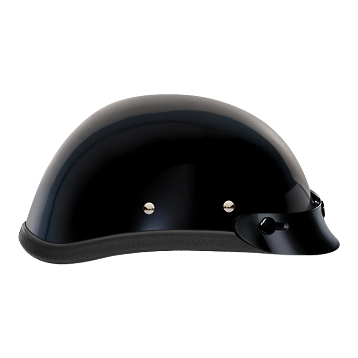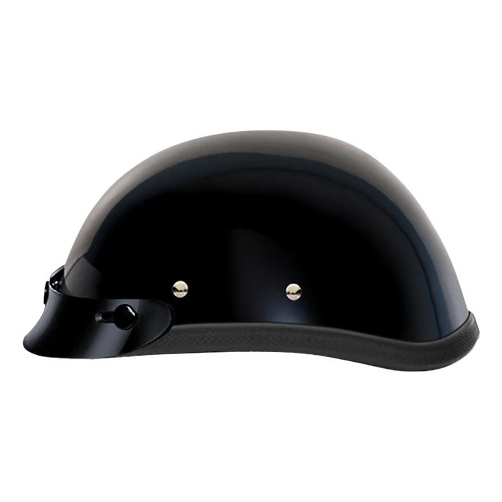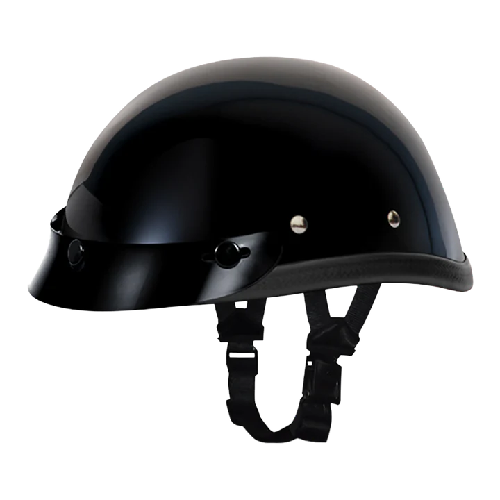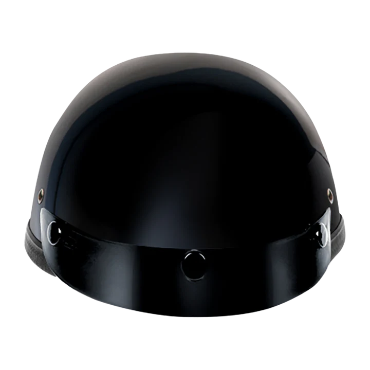 Our D.O.T. Daytona Skull Cap half shell helmet with inner retractable smoke shield (built in sunglasses) in the Soft Touch, Dull Black finish, Meets and exceeds D.O.T. FMVSS 218 standards. Visor not available for this model.