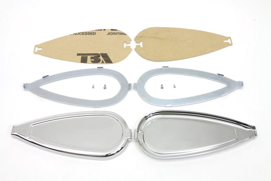 1940-46 tank emblem kit includes 2 parkerized tank emblems mount strip set gaskets and an Anderson and V-Twin patch. Originally offered by Anderson Motorcycle Supply of Los Angeles. 1941-1965 FL