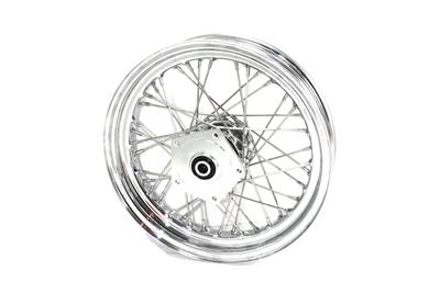 Replica rear 16 x 3.00 wheel assembly features a chrome drop center rim chrome hub and stainless steel spoke set. **NOTE: All spokes on wheel need to be inspected and re-torqued after 500 miles of original installation.