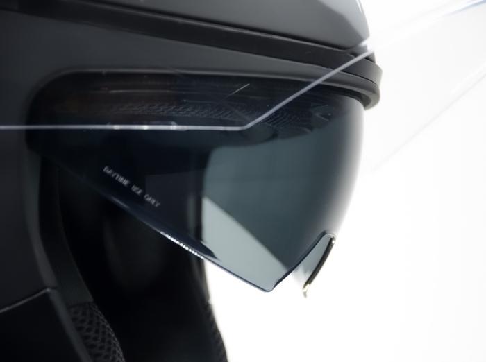 • Internal drop-down smoke sun shield with easy flip-switch.