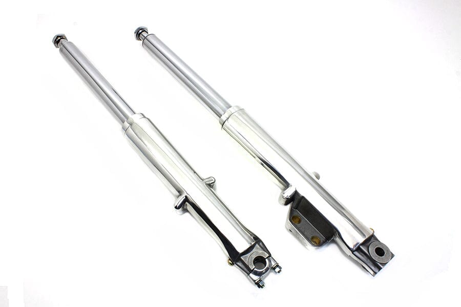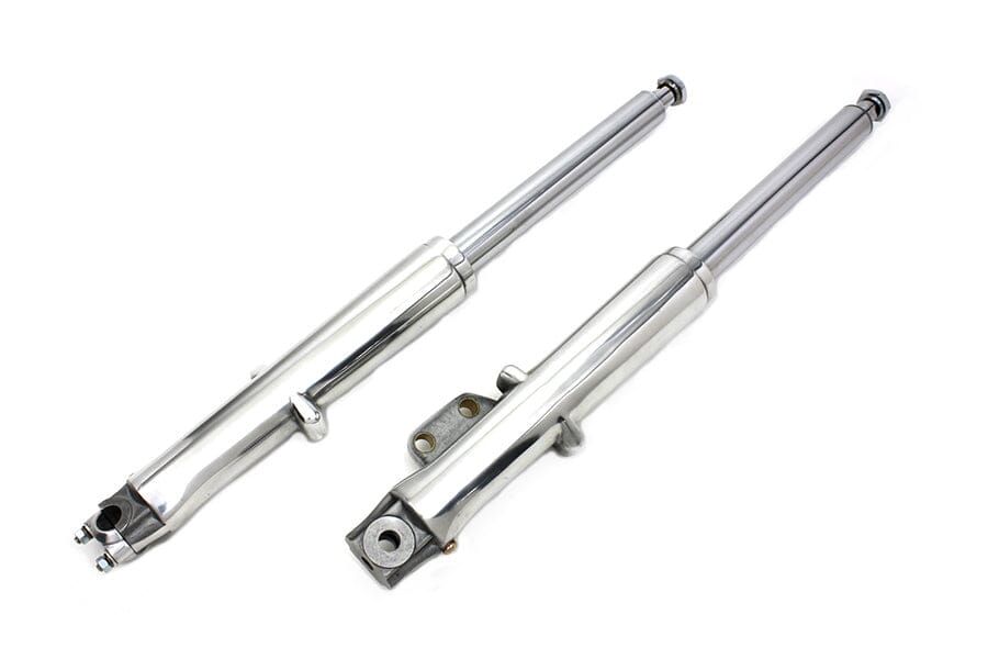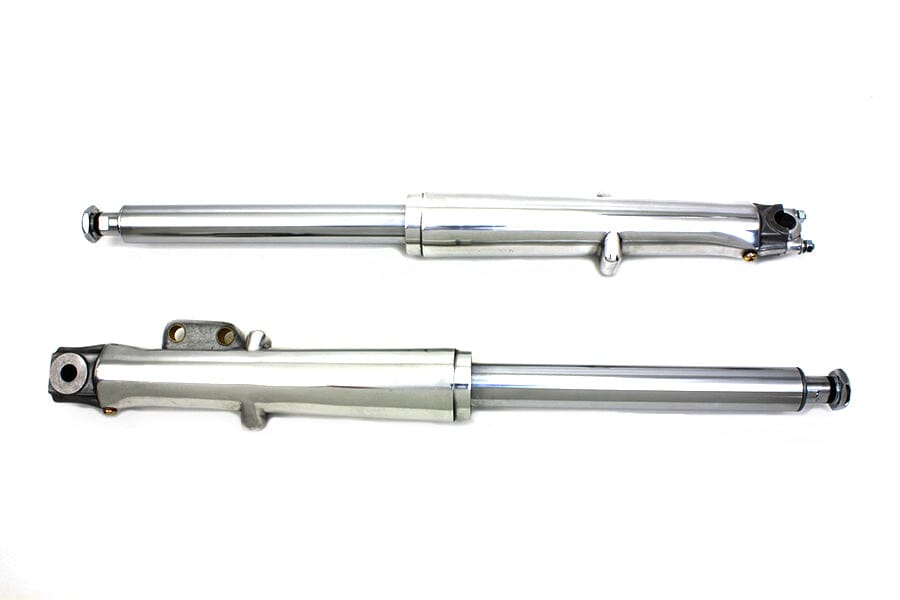Fork tube assembly with polished sliders include springs and all internal components installed. The top of the fork to the bottom of the axle measures 29-1/2 in length. 1973-1984 FL