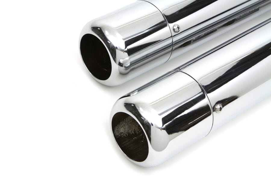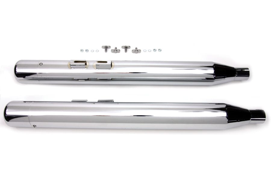 Chrome muffler set has 3.5" outer diameter with 2.5" baffles.Baffles are not removable. Order replacement T-bolts separately VT-31-1971, if required.