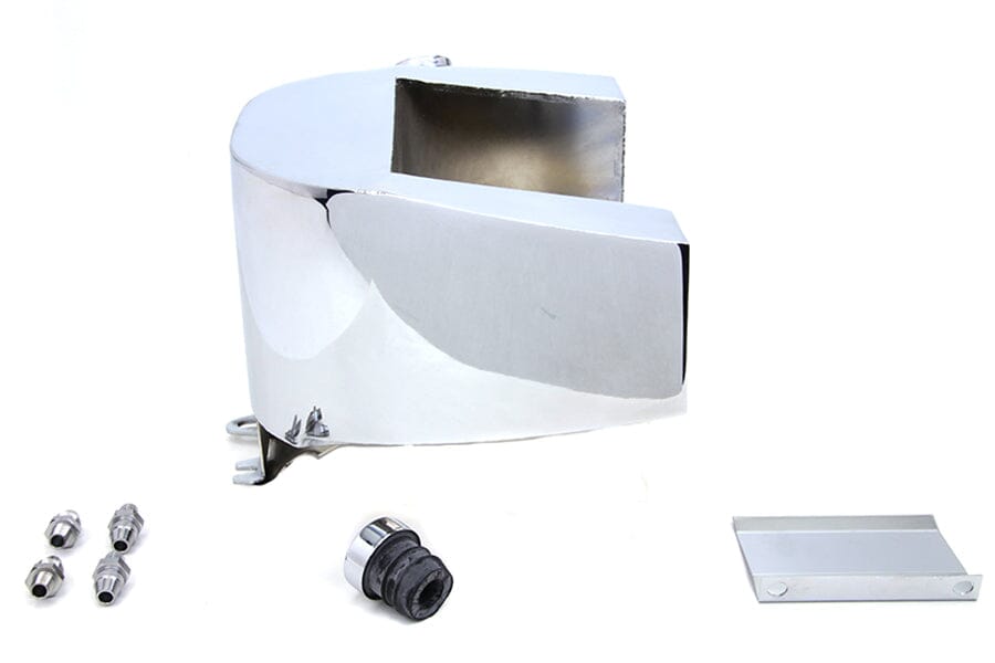 Our chrome wrap-around 4-speed oil tank is for electric start models, and has a four quart capacity. It features a built in battery box.
