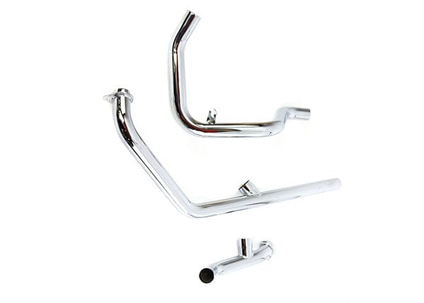 Chrome dual crossover system features intersection of left side crossover at rear pipe. Pipes have a 1-3/4" outer diameter. Pipes are for kick and electric start.